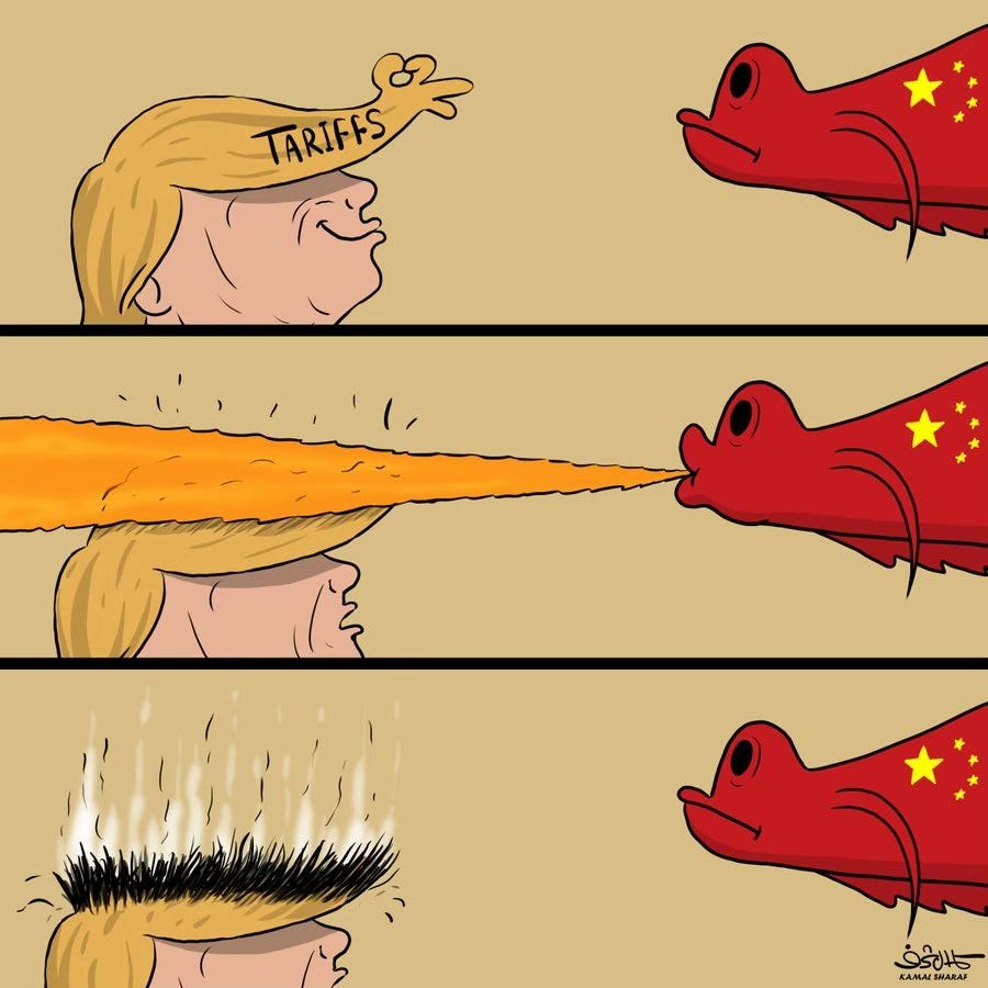 La crise de colĂšre du bambin, ou le Trump Tariff Tizzy [TTT : tempĂȘte tarifaire trumpienne], dĂ©sormais portĂ©e Ă 145 % (et ce n'est pas fini), est une nouvelle tentative fracassante de Trump de chambouler l'Ă©chiquier.
