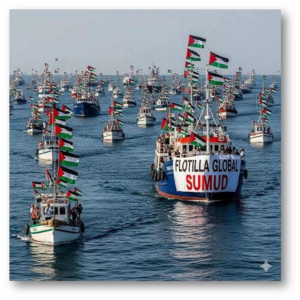 Cet Ă©veil est dĂ©jĂ en cours. En Italie, les salariĂ©s ont lancĂ© une grĂšve nationale pour la Palestine, conscients que la solidaritĂ© avec Gaza est une solidaritĂ© avec leur propre avenir. La flottille mondiale Sumud, composĂ©e de cinquante bateaux, fait route vers les cĂŽtes de Gaza, transportant non seulement de lâaide humanitaire, mais aussi un rejet des limites acceptables de lâaction. Ce sont des hommes et des femmes qui prennent leur destin en main, agissant au-delĂ des paramĂštres fixĂ©s par les mĂȘmes institutions qui ont prouvĂ© leur faillite morale.