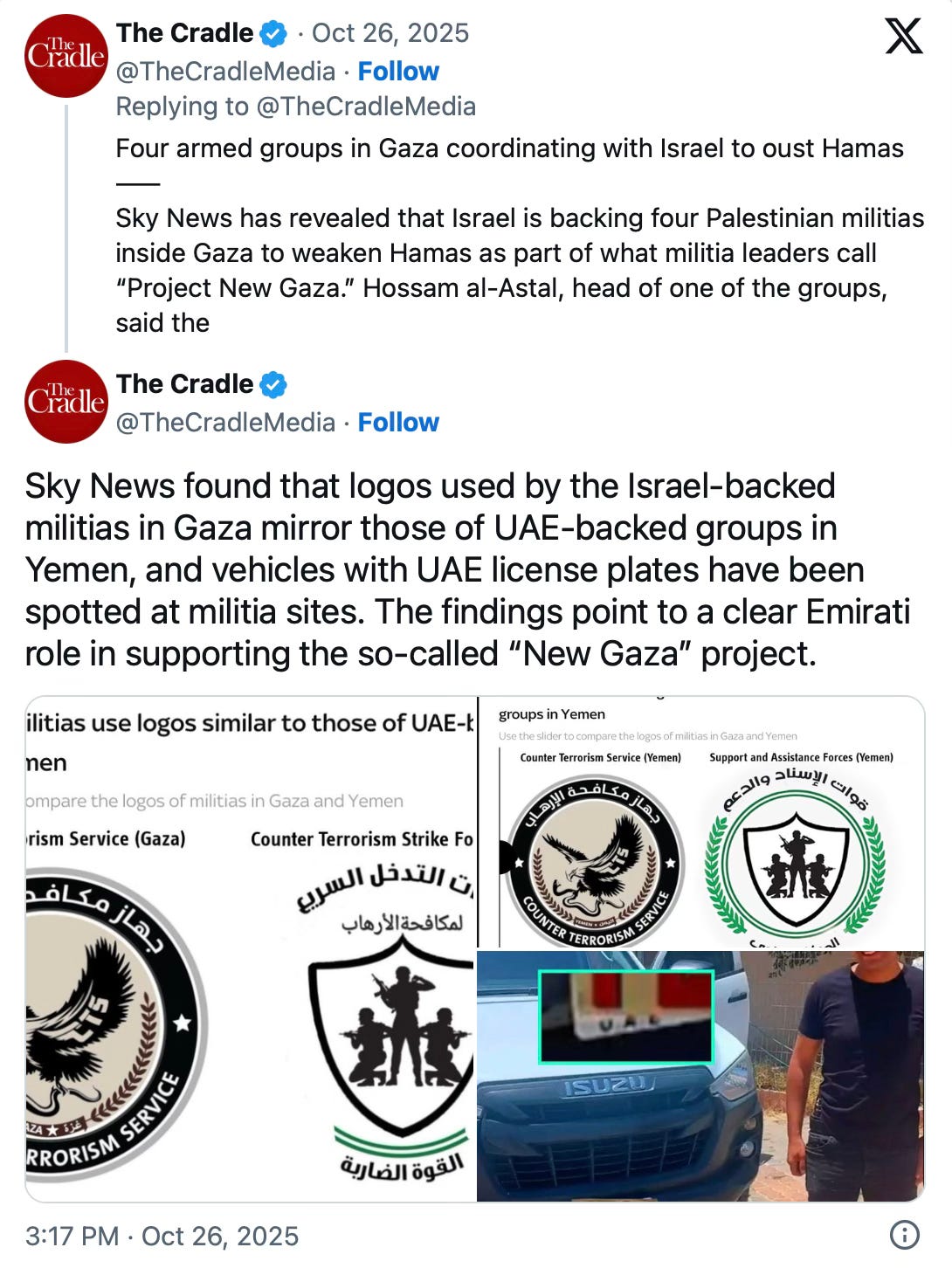 đâđš Quatre milices soutenues par IsraĂ«l & les Ătats arabes planifient la âNouvelle Gazaâ & l'Ă©radication du Hamas