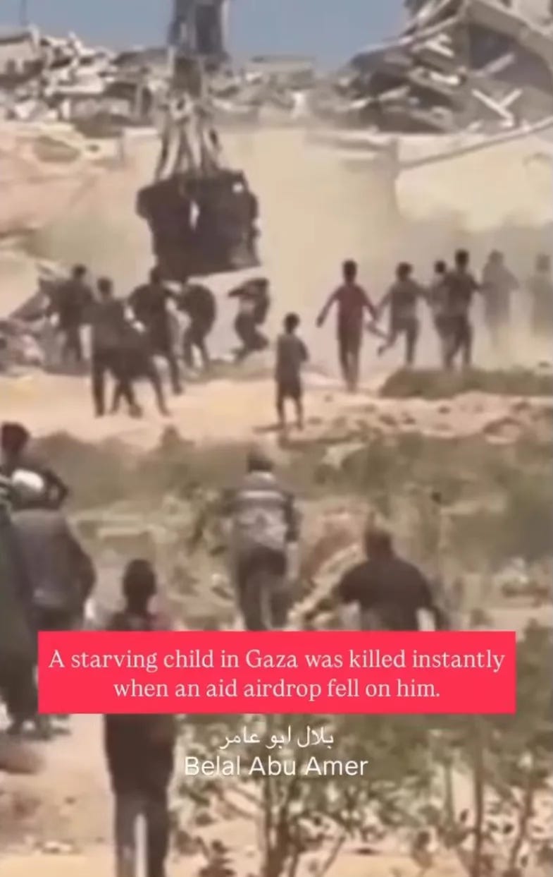 Muhannad Zakaria Eid, ĂągĂ© de 15 ans, a Ă©tĂ© tuĂ© le 9 aoĂ»t Ă Gaza par un colis humanitaire tombĂ© du ciel. Je l'ai vu mourir. J'ai vu un enfant affamĂ©, qui pensait enfin avoir un peu de rĂ©pit pendant les bombardements incessants, Ă©crasĂ© Ă mort par ce qu'on appelle âl'aideâ. Je n'arrive plus Ă savoir si je suis plus en colĂšre contre le monde qui regarde ou plus dĂ©goĂ»tĂ© qu'il applaudisse ceux qui ont larguĂ© ces containers. Tout ce que je sais, c'est que le chagrin et la rage me consument.